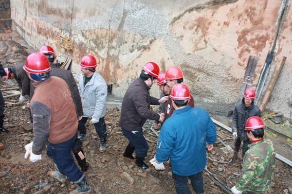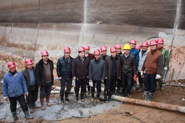 董事長、總經理王元旦一行首先來到基坑澆筑、混凝土攪拌站等施工現場進行察看,與施工人員一一握手,并聽取了春節期間帶領員工奮戰在施工一線的公司副總經理聶玉和的生產情況匯報。董事長、總經理王元旦詳細詢問了攪拌站的生產能力能否滿足施工要求,工程的進展情況及后期施工中的各項措施,對項目部全體員工放棄節假日搶工期、保質量、抓進度的奉獻精神給充分肯定和高度評價,他勉勵大家保證質量安全的前提下,抓緊時間完成大壩防滲面板的施工、再苦再累也要咬緊牙關挺過去,并要求施工項目部合理安排好大家春節期間的工作和生活。