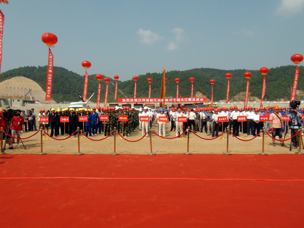8月29日上午,我省目前投資規(guī)模最大的水利樞紐工程--峽江水利樞紐工程舉行大江截流儀式。根據(jù)江西省峽江水利樞紐工程建設(shè)總指揮部的安排,我公司總經(jīng)濟(jì)師孫八根、副總經(jīng)理胡鴻煌率領(lǐng)60多人的隊伍參加了峽江水利樞紐工程大江截流儀式。