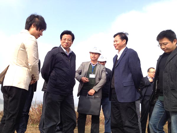 11月18日,九江市副市長趙偉一行來到我公司承建的星子縣蛟塘防洪工程工地檢查指導工作。趙副市長在施工現場聽取了我公司施工負責人關于工程進度、質量安全、下一步工作計劃的簡要匯報后,對我項目部前期開展的工作表示了充分的肯定。他指出,由于開工推遲,時間緊,任務急,一定要發揮水利一級資質施工企業的優勢,在加強工程質量管理的同時,加快工程的進度,科學安排,保證時間節點,確保明年工程能安全渡訊。