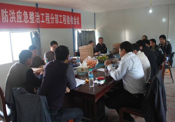 2014年11月20日上午9點,萍鄉(xiāng)市城市防洪應急整治工程第一次5個分部工程驗收會議在項目部2樓會議室舉行。經(jīng)過現(xiàn)場察看、資料核查,該項目明河段和箱涵段的5個分部工程實體質(zhì)量和內(nèi)業(yè)資料得到各方的一致好評,順利按新規(guī)范的評定要求通過了驗收工作。