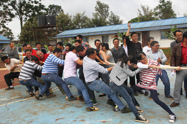 為了凝聚精神,交流感情,2014年12月25日,肯尼亞分公司第一屆迎新聯(lián)誼會在雙河正式舉辦。本次聯(lián)誼會共設拔河、籃球、CS三項團體比賽項目,乒乓球、象棋、升級三項個人比賽項目及趣味套圈項目,肯尼亞辦事處及各在建項目均組隊參加了比賽。