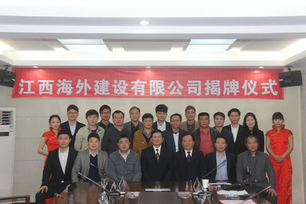 隨后,伴隨著歡樂喜慶的歌曲,總公司董事長王元旦,總經(jīng)理徐洪良與江西海外建設有限公司執(zhí)行董事張周平,總經(jīng)理黃鄭民為新公司揭牌并合影留念。