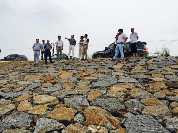 驗收工作組成員與專家現場察看工程質量