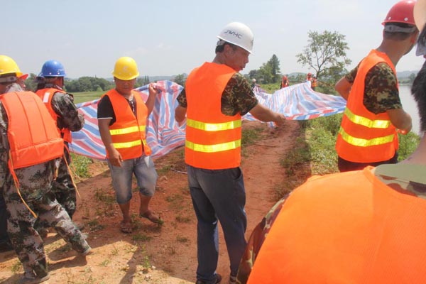 為檢驗和考核我公司制定的《防汛應急預案》的科學性、可操作性,同時檢驗公司應急救援組織及全體成員的實際應急能力。2016年6月14日,公司結合2016“安全生產月”活動及貴溪市新田聯圩防洪工程施工項目部在建工程防洪度汛的施工安排,在貴溪市新田聯圩防洪工程施工項目部舉行了防汛應急預案演練。