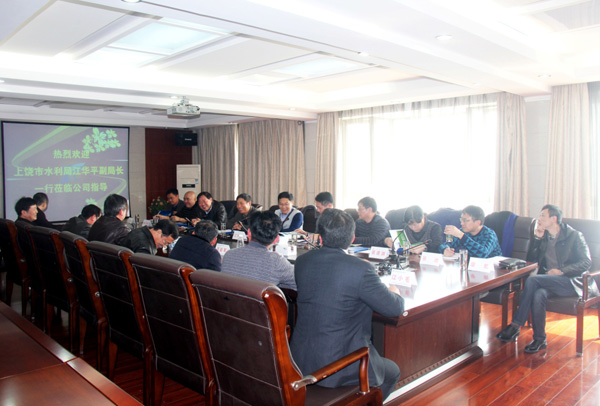 2月15日,上饒市水利局副局長江華平一行來公司就企業改制工作進行調研。公司董事長王元旦、總經理徐洪良、黨委書記王延軍、副總經理兼江西海外公司執行董事張周平、副總經理曾朝文等一同參加了調研座談。