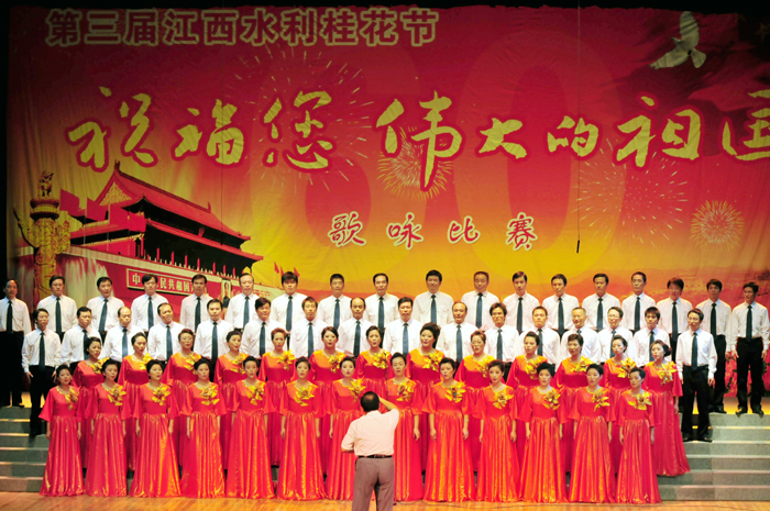 2009年9月25日,第三屆江西水利桂花節(jié)“祝福您,偉大的祖國”歌詠比賽在省話劇團(tuán)藝術(shù)大廳隆重舉行,江西省水利廳以及廳直屬單位共10個代表隊參加了比賽。