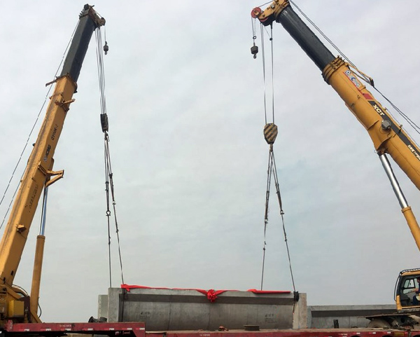 廖坊灌區(qū)二期工程PPP項(xiàng)目為國(guó)家“十三五”期間172項(xiàng)重大水利工程之一,也是我公司首個(gè)“PPP” 項(xiàng)目;總投資12.9億,其中建安投資7.83億。2018年1月15日上午十時(shí)許,在業(yè)主、監(jiān)理等參建單位人員的注視下,伴隨著禮炮的轟鳴,下幕塘渡槽順利完成了首跨槽身的吊裝。首跨渡槽的吊裝為項(xiàng)目的按期完成打下堅(jiān)實(shí)基礎(chǔ),同時(shí)也為我司積累了現(xiàn)代化裝配式建筑的施工經(jīng)驗(yàn)。
