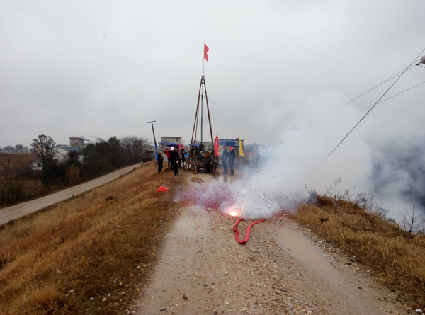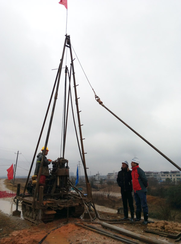 禾河大道路堤改造工程施工2標成功打下開工第一鉆