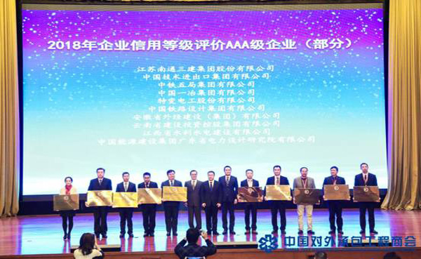 12月5日,中國(guó)對(duì)外承包工程商會(huì)第七屆理事會(huì)第四次全體會(huì)議在山東濟(jì)南隆重召開(kāi),來(lái)自全國(guó)各地的140多家理事單位的300多名代表參加會(huì)議。公司董事、海外公司執(zhí)行董事張周平出席會(huì)議。會(huì)議頒發(fā)了“2018年企業(yè)信用等級(jí)評(píng)價(jià)AAA級(jí)企業(yè)(部分)”牌匾,公司憑借良好的業(yè)績(jī)和口碑,再次榮獲中國(guó)對(duì)外承包工程企業(yè)信用評(píng)價(jià)AAA級(jí)信用企業(yè),并在現(xiàn)場(chǎng)受邀上臺(tái)接受授牌。