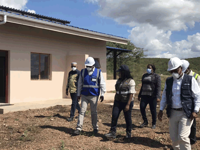 Cecilia女士先后參觀了移民房、副壩、溢洪道和水庫管理站新辦公大樓,并現場觀摩了弧形閘門的啟閉演示。她邊看邊問,詳細了解各分部工程的建設情況和項目總體進度,認真聽取日常施行的各項防疫措施;在得知項目即將竣工的消息后,對承包商的表現表示高度贊賞。她動情地說道,盡管現在新冠肺炎肆虐全球,但是優秀的中國承包商在做好各項防控措施的基礎上,仍然堅守戰線、迎難而上,充分體現了履約精神和奉獻精神,值得尊敬!她表示,也許疫情將持續一段時間,但是只要承包商有困難,就要毫不猶豫地向政府表達,公共工程部永遠是承包商堅強的后盾。她強調,業主國家水務局和承包商要更加精誠團結,充分估計疫情可能造成的各類影響,謀劃在前、全盤統籌,以縝密的防控措施和有力的生產行動站好最后一班崗,如期實現項目移交和運營,為300萬首都人民帶去生命之水。