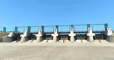 溢洪道6扇弧形門全貌